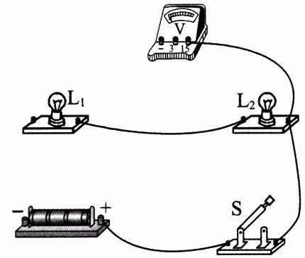 1.(2024·陕西商洛期末)如下图所示,请用笔画线代替导线将电路连接完整。要求:L₁ 与 L₂串联,电压表测量 L₁ 和 L₂ 的总电压。