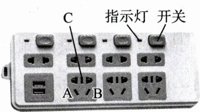 2. (2022·湖北中考)下图所示的是常用的插线板,闭合开关,指示灯发光,且插孔可以提供工作电压。下列说法正确的是(