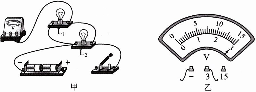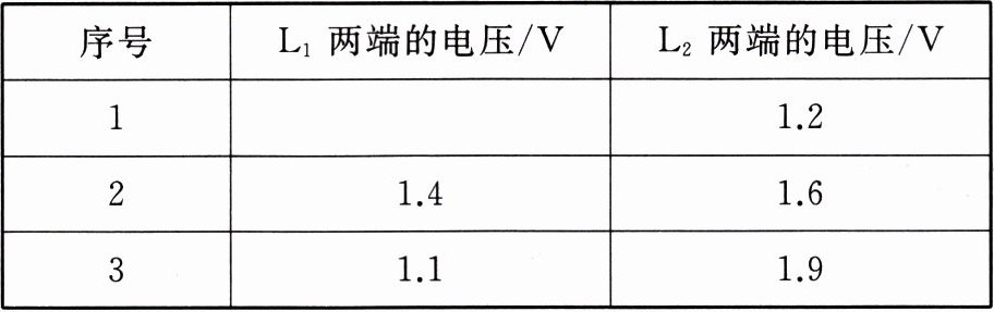 。(4) 排除故障后,用电压表分别测量小灯泡 L₁、L₂及电源两端的电压,电压表示数均如图乙所示,为