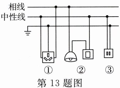 13. (2024·天津中考)上图为部分家庭电路示意图,其中连接正确的是(