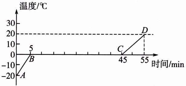 (2)由图像可知,冰从-20℃吸收热量升高到0℃,需要5 min,CD段水从0℃升高到20℃,需要10 min,故冰在AB段吸收的热量