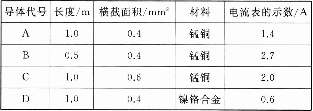(2) 为比较A、B、C、D四根导体电阻的大小,可通过观察
