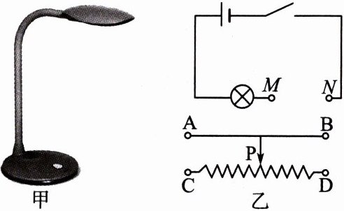 3.(2024·安徽滁州期中)图甲所示的为某同学学习时使用的调光台灯,图乙为该调光台灯的工作原理图,在电路图的M、N两点之间接入一个滑动变阻器,使滑片P向左移动时,灯泡的亮度变亮,则下列接法中正确的是(