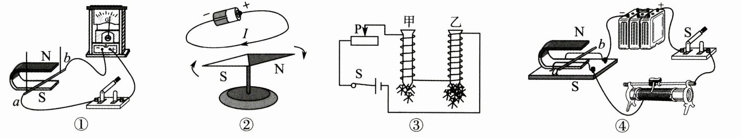D.丁图是电动机的原理,闭合开关后,金属棒 ab 将发生运动