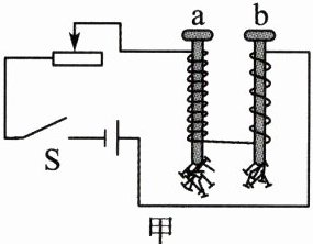 )A.甲图中通电后电磁铁 b 的线圈匝数少,磁性更强