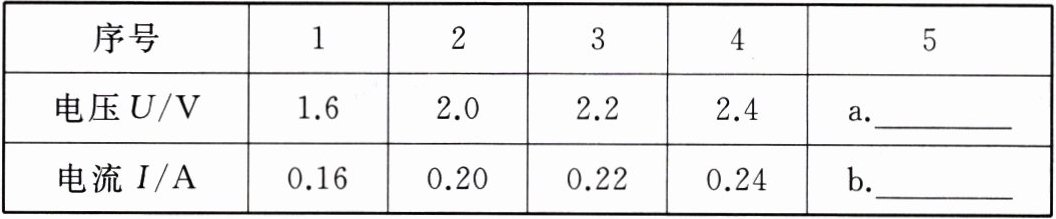 (4)排除故障后,闭合开关,改变滑动变阻器滑片的位置,记录实验数据见下表。下表中空白处电压如图乙所示,该电压表的示数是