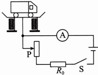 3.(2023·江苏连云港中考)下图是测量货车质量的地磅结构示意图,货车的质量可以通过电流表的示数转换测出,其中 $ R_{0} $ 为定值电阻。下列说法正确的是(