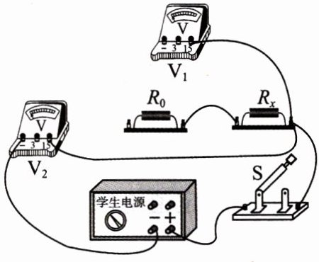 (2) 电压表V₁的示数用U₁表示,电压表V₂的示数用U₂表示,请用U₁、U₂和R₀表示Rₓ,Rₓ=