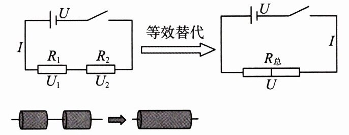$IR_总 = I × (R_1 + R_2)$,即$R_总 = R_1 + R_2$