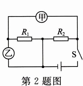 2.如上图所示,电源电压为$5V$,$R_{1}=5\Omega$,$R_{2}=10\Omega$,闭合开关后,两电表有示数且保持稳定,则甲电表的示数为