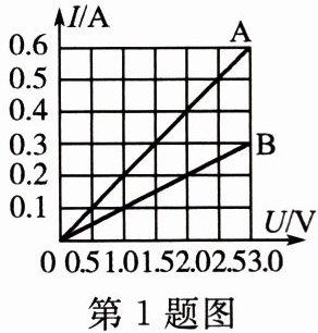 1.下图是电阻$A$和$B$的$I-U$图像。若把二者并联后接入电路中,则当通过电阻$B$的电流是$0.2A$时,通过电阻$A$的电流是