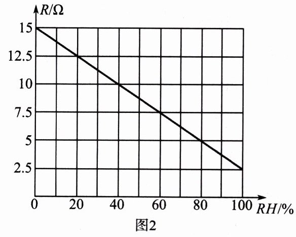 解:由图$2$可知,环境湿度为$60\%$时,$R' = 7.5\Omega$。