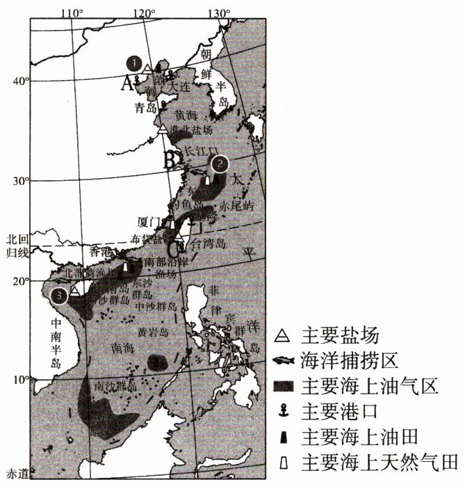 。(3) 写出图中数字序号代表的主要盐场的名称:①