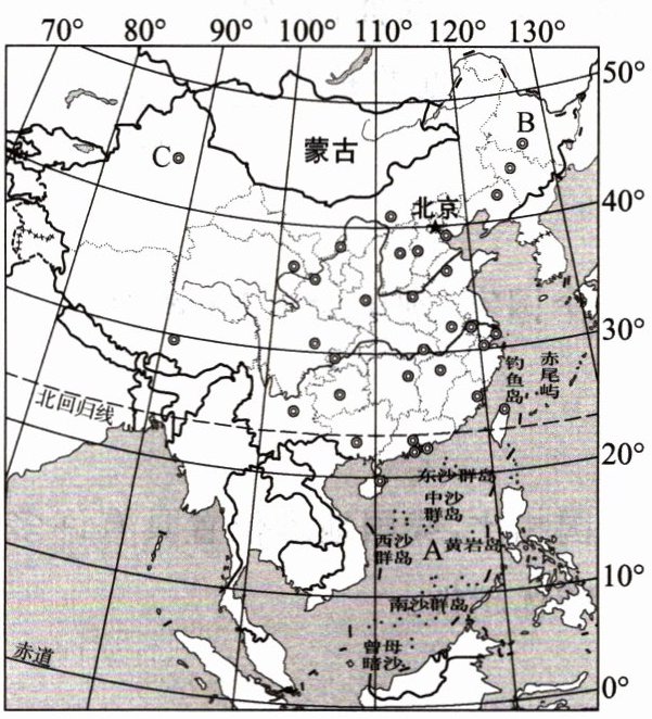 (2)从纬度位置看,我国大部分地区位于北温带,南部部分地区位于