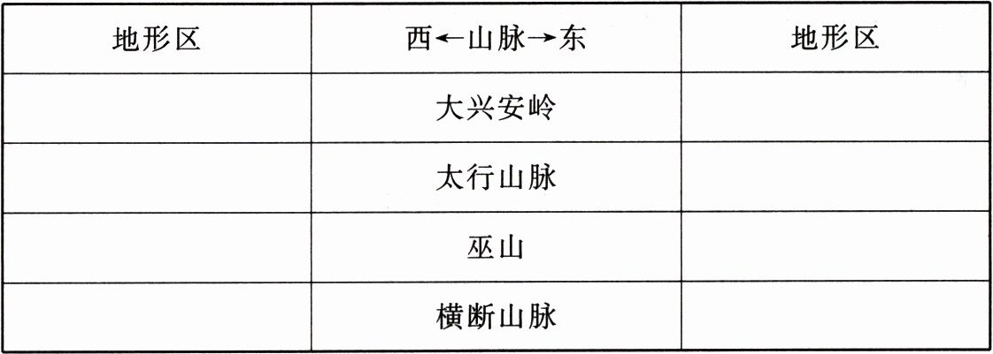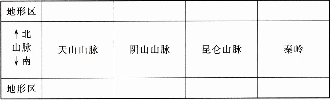 3. 结合课本P26图2.5,找出以下山脉两侧的地形区。