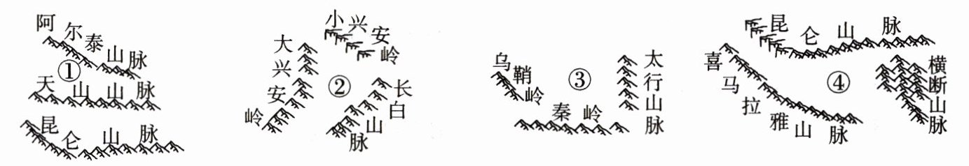 1. 山脉是地形的“骨架”,我国地形复杂多样。关于下图中山脉的判断,正确的是(
