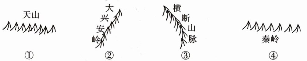 我国地域辽阔,五岳山川巍巍耸立,是祖国不屈的脊梁。读下面的山脉示意图,回答2~3题。