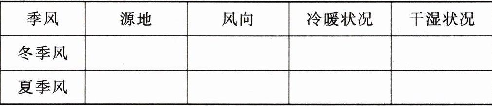 2. 结合课本 P37 图 2.24,比较冬、夏季风的差异。