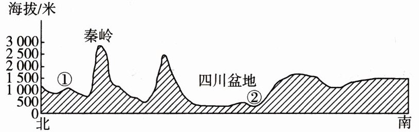下图为我国部分地区沿东经 106.5°经线地形剖面图。读图,回答 8~10 题。