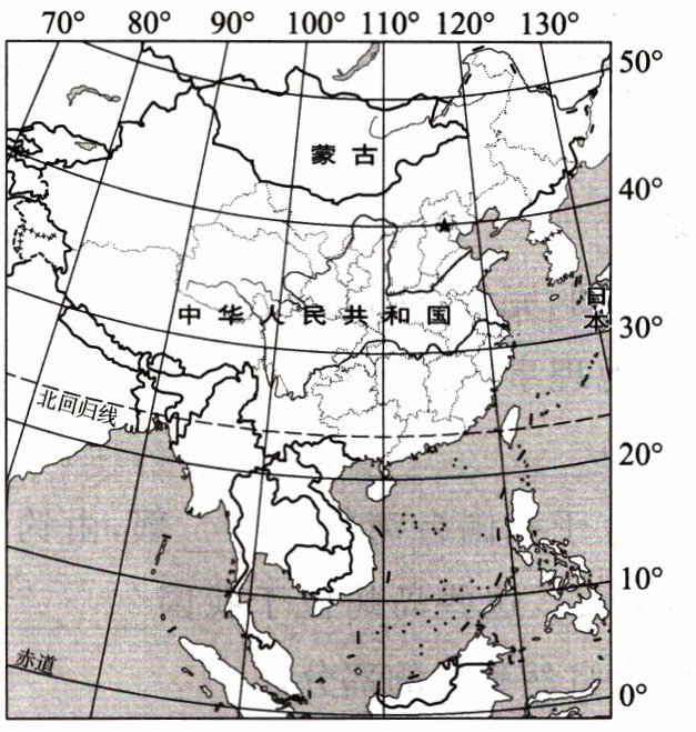 (1)黑龙江 乌苏里江 帕米尔高原 南沙群岛 曾母暗沙 黑龙江省 漠河市 黑龙江 ①62° 4小时 ②49° 5390千米 ③东西跨经度广,造成东西时间差异大。 ④南北跨纬度广,造成南北气候差异大。