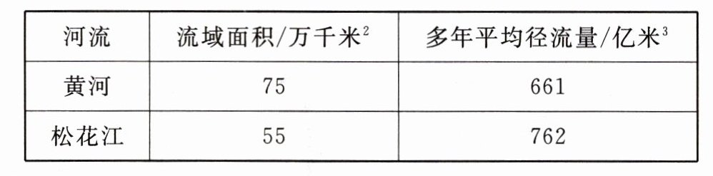 12.下表为黄河和松花江流域面积、多年平均径流量对比表。与黄河相比,松花江径流量较大的主要原因是(