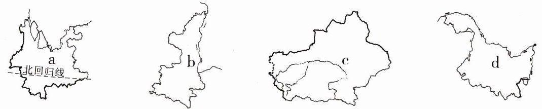 )A.a—②—云或滇 B.b—③—陕或秦 C.c—⑤—新 D.d—①—黑