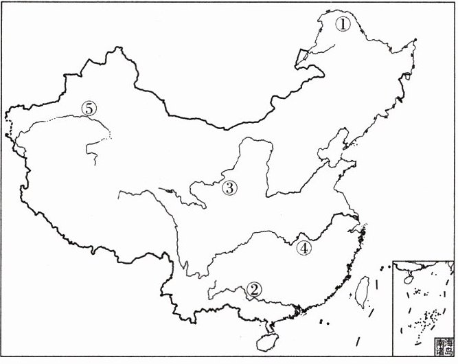 )A.④长江 B.②珠江 C.①黑龙江 D.⑤塔里木河