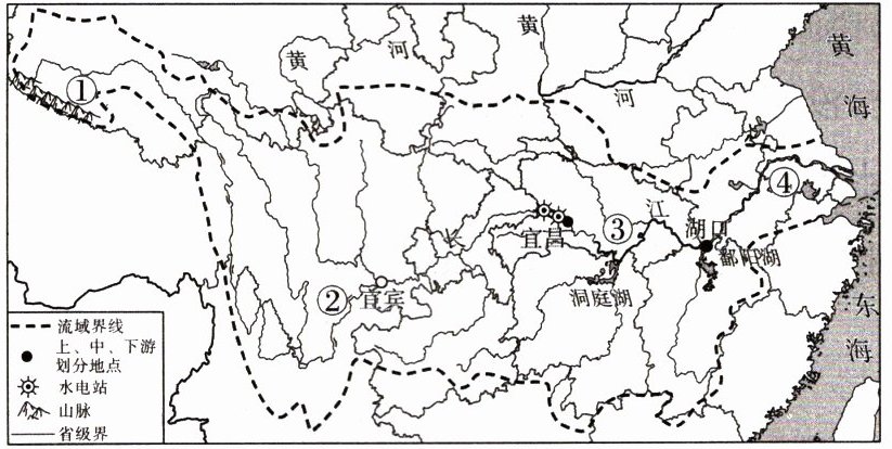(2023·湖北中考)长江不仅是中华民族的“母亲河”,而且是令人叹为观止的“生态宝藏”。下图为长江流域图。读图,回答 1~5 题。