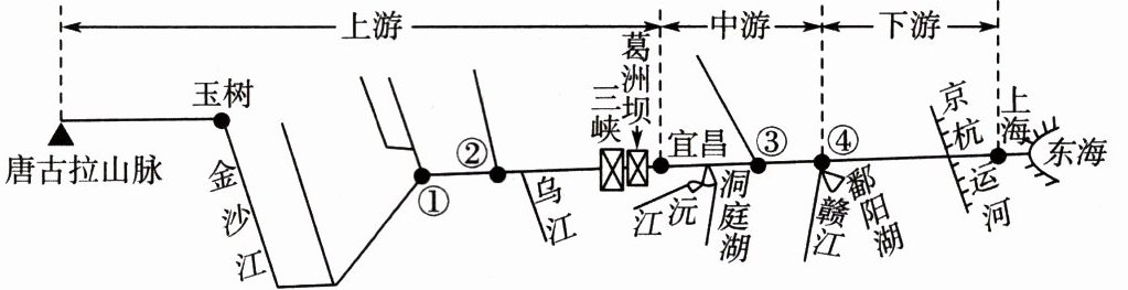 6. 图中长江沿岸的港口城市和交汇支流,对应正确的是(