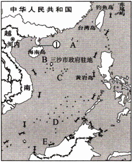 (2)东沙群岛 西沙群岛 中沙群岛 南沙群岛 曾母暗沙 琼州海峡