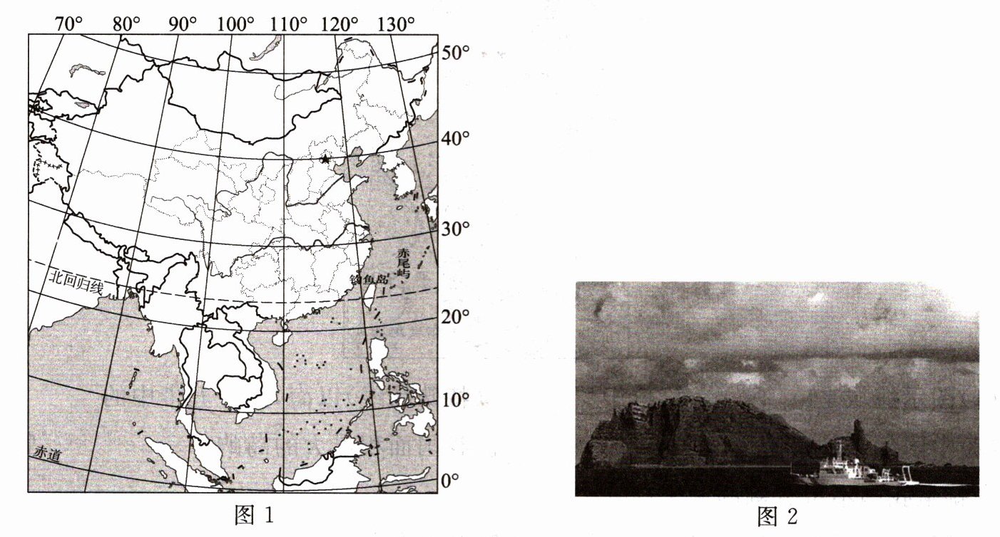 国家版图指一个国家行使主权和管辖权的疆域,是国家主权与领土完整的象征。一线一界,都是国家行使主权的疆域;一点一段,都代表着祖国的壮美河山。图 1 为我国疆域简图,图 2 为钓鱼岛常态化巡航景观图。据图回答 6~8 题。