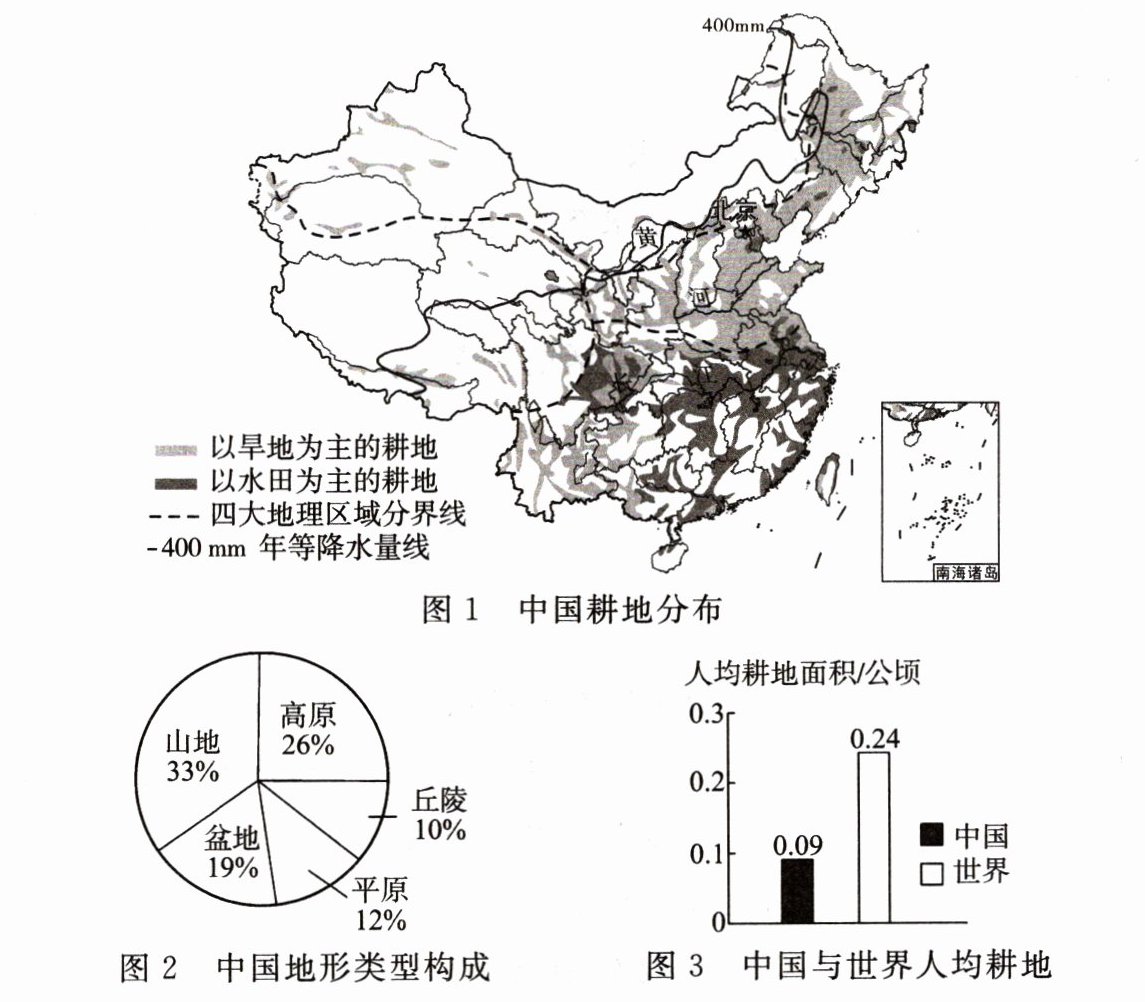 (1) 我国耕地分布不均匀,大多数耕地分布在