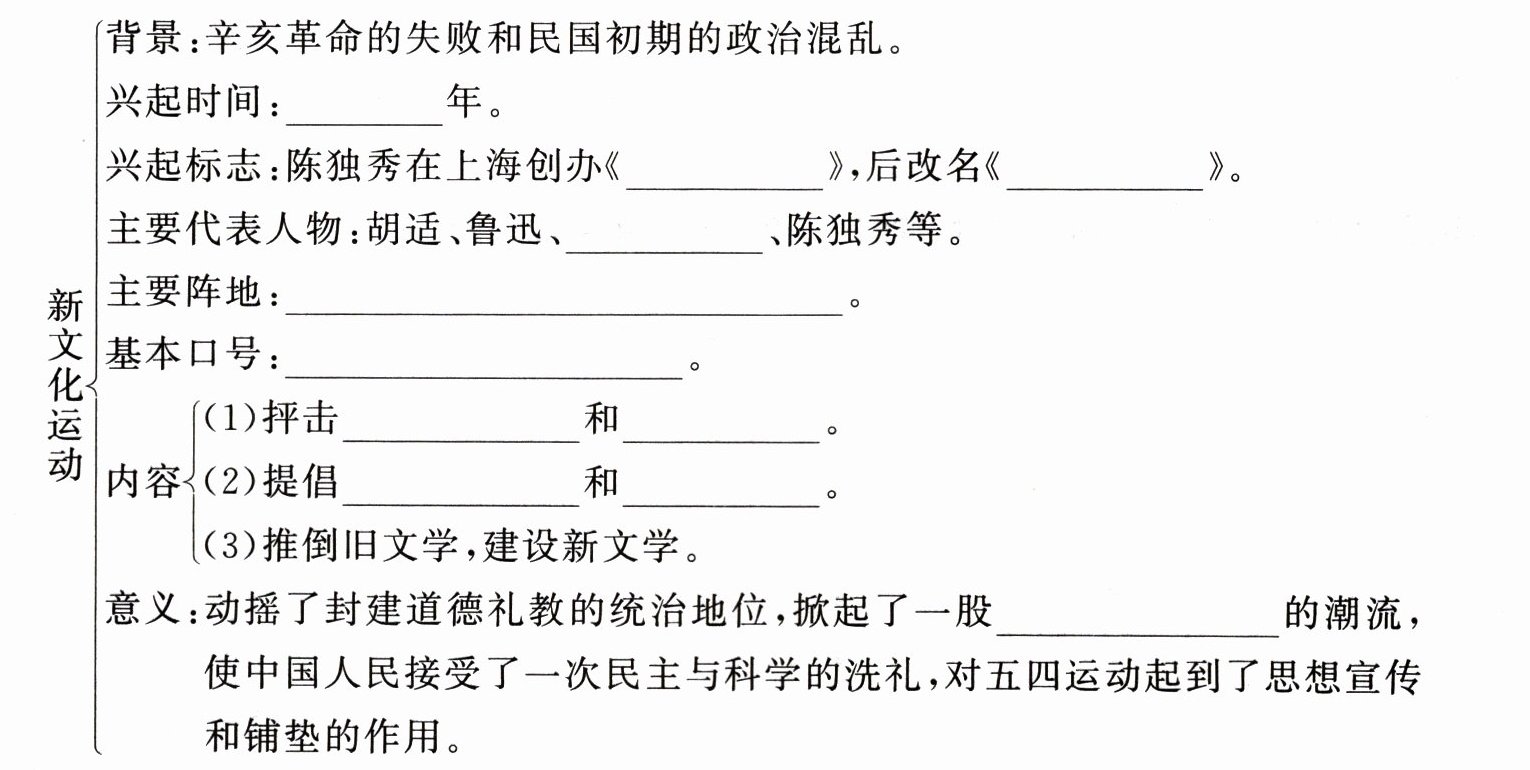 意义:动摇了封建道德礼教的统治地位,掀起了一股思想解放的潮流,使中国人民接受了一次民主与科学的洗礼,对五四运动起到了思想宣传和铺垫的作用。