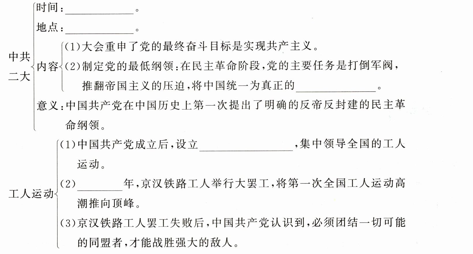(1)中国共产党成立后,设立中国劳动组合书记部,集中领导全国的工人运动。