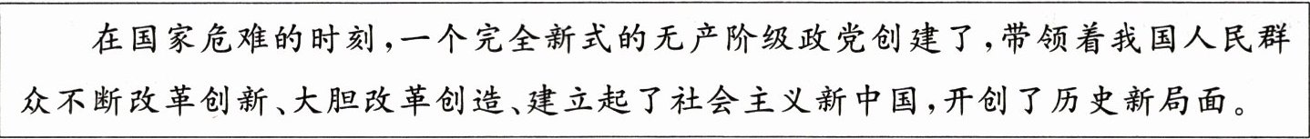 (3)中国共产党的诞生,是中国历史上开天辟地的大事变。自从有了中国共产党,中国革命的面貌就焕然一新了。