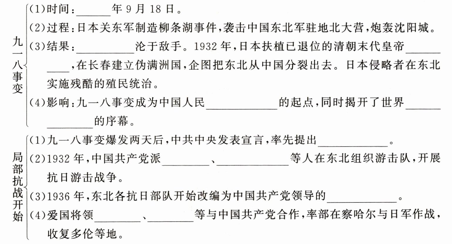 (4)抗日战争;反法西斯战争序幕局部抗战开始