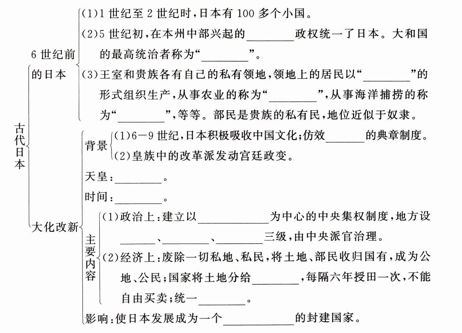 主要内容:(1)天皇;国;郡;里;(2)公民;赋税;