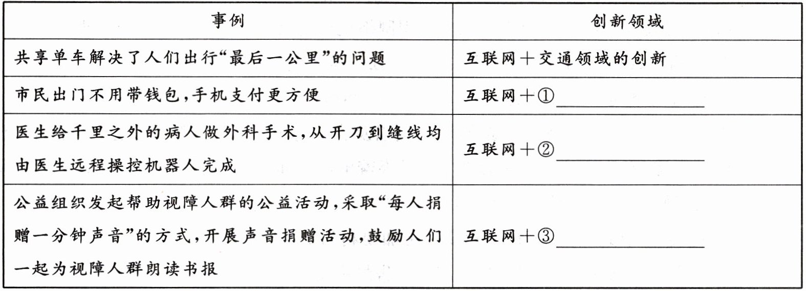 1. 新时代,互联网就像一位“全能保姆”。浩然一家越来越离不开网络了,妈妈经常从网上购物、寻医问药、查询生活小技能;浩然在网上看公开课、结交新朋友、“云游”各大博物馆;爸爸通过政府网站反映小区交通拥堵问题,相关部门积极回应,拥堵问题有所缓解。