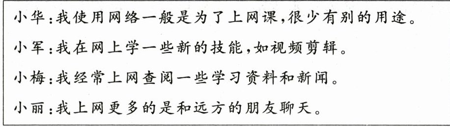 14. 几名同学围绕使用网络的情况进行了以下交流。