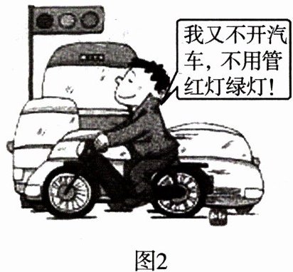 材料二:《中华人民共和国道路交通安全法》规定:通过有交通信号灯的路口,行人、非机动车应当按照交通信号灯指示通行。行人、非机动车驾驶人违反道路交通安全法律、法规关于道路通行规定的,处警告或者5元以上50元以下罚款;非机动车驾驶人拒绝接受罚款处罚的,可以扣留其非机动车。