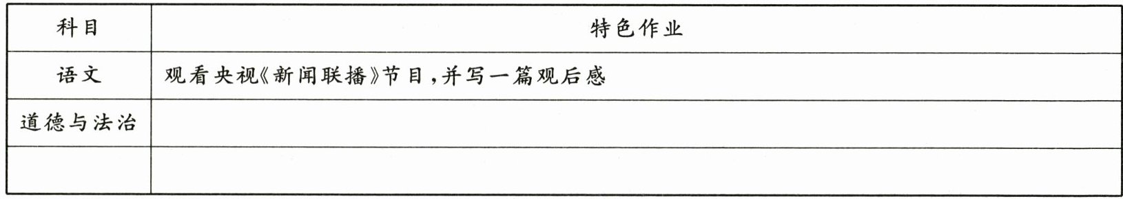 材料二:下面的表格是同学们在道德与法治课上设计的特色作业单。
