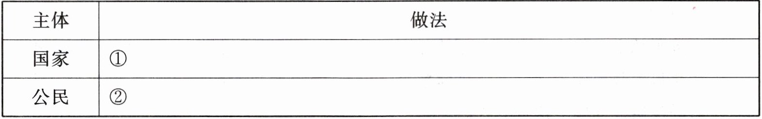 (2) 守护正义不仅需要国家的支持,也需要公民的努力。请你根据所学知识,将下列表格补充完整。