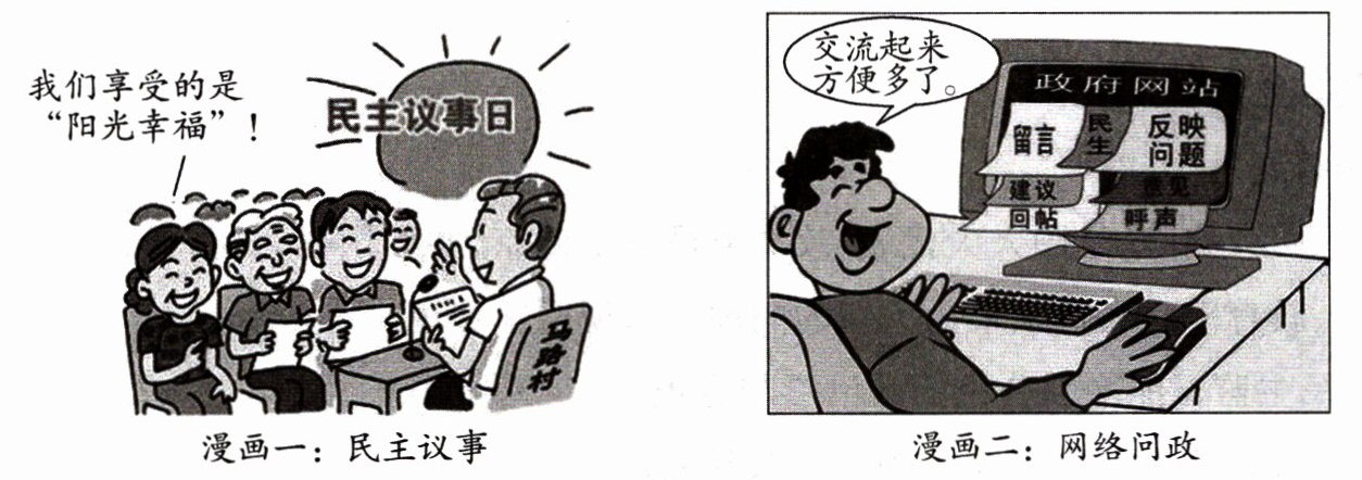 (2)综合上述漫画,用所学知识简要说明上述民主形式对发展社会主义民主的意义。