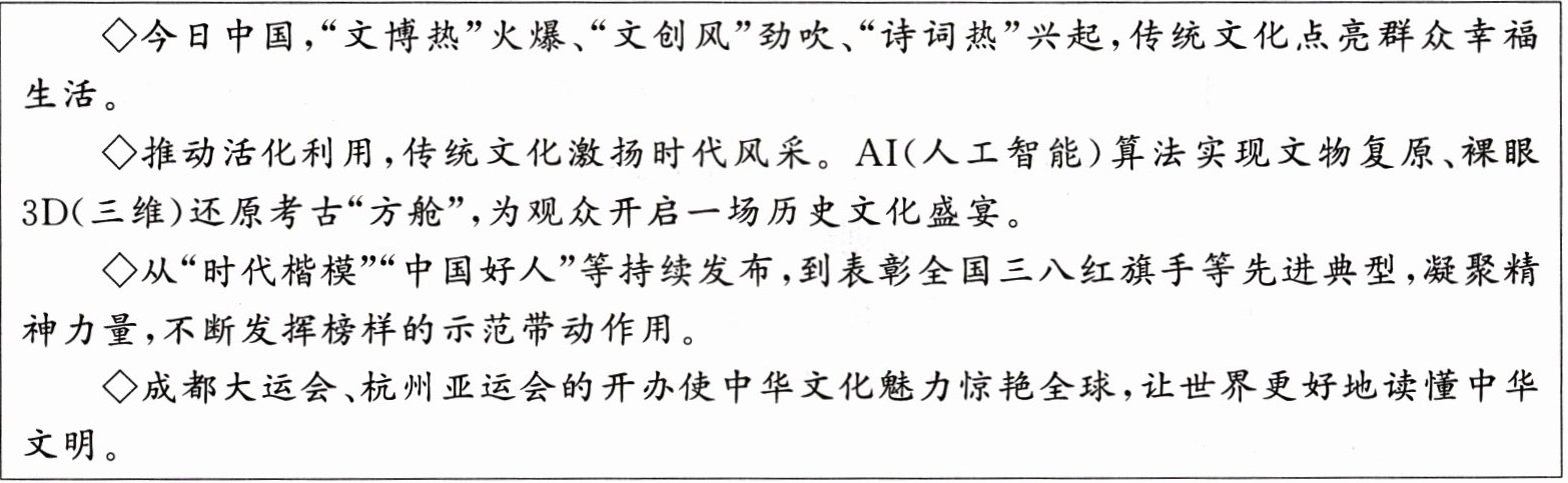 (2)结合材料,运用所学知识谈谈如何铸就中华文化的新辉煌。