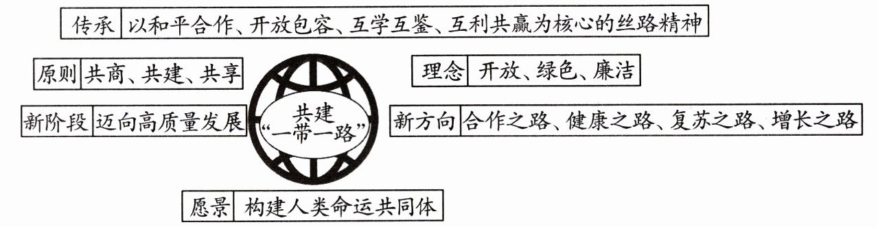 (3)①我们要树立开放、绿色、廉洁的理念。我们要保持开放的心态,践行绿色生活方式和廉洁的态度。②我们要加强学习丝路精神。要保持开放包容的心态,积极参与国际交流与合作。③我们要发挥创新精神。要充分发挥自己的想象力和创造力,勇于探索,为共建“一带一路”提供新方向。