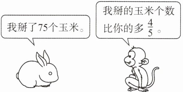 )个玉米,小猴掰的玉米个数比小兔多$\frac {4}{5}$,多出的部分是(75