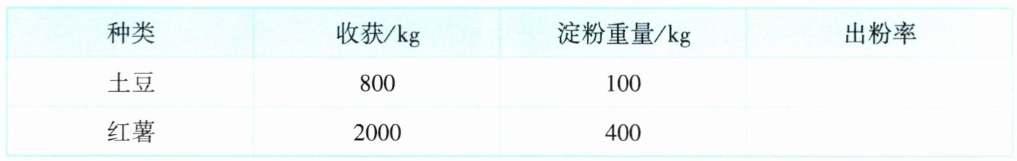 (2)爷爷家先后收获了一些农作物,小明把它们制作成淀粉的结果用表格记录了下来。