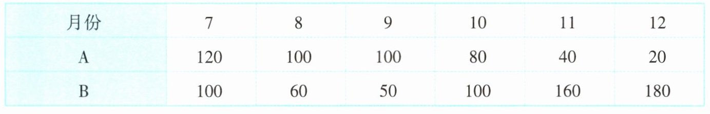 1. 电信商城去年下半年A品牌手机与B品牌手机销售情况如下表:(单位:部)