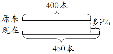 4. 小赵家原来藏有图书400本,今年新购进了一批书,现在藏有图书450本,小赵家现在藏书比原来多了百分之几? (先画图表示数量关系,再解答)