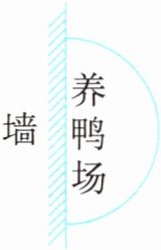 右图是一个一面靠墙,另一面用篱笆围成的半圆形养鸭场。如果这个半圆的直径为 $ 8 $ m,那么篱笆长多少米?
